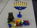 Aaron later brought out a few holiday-themed sculptures: a Menorah, some wrapped gifts…