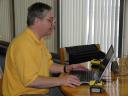 John making some adjustments to the’bot programming.